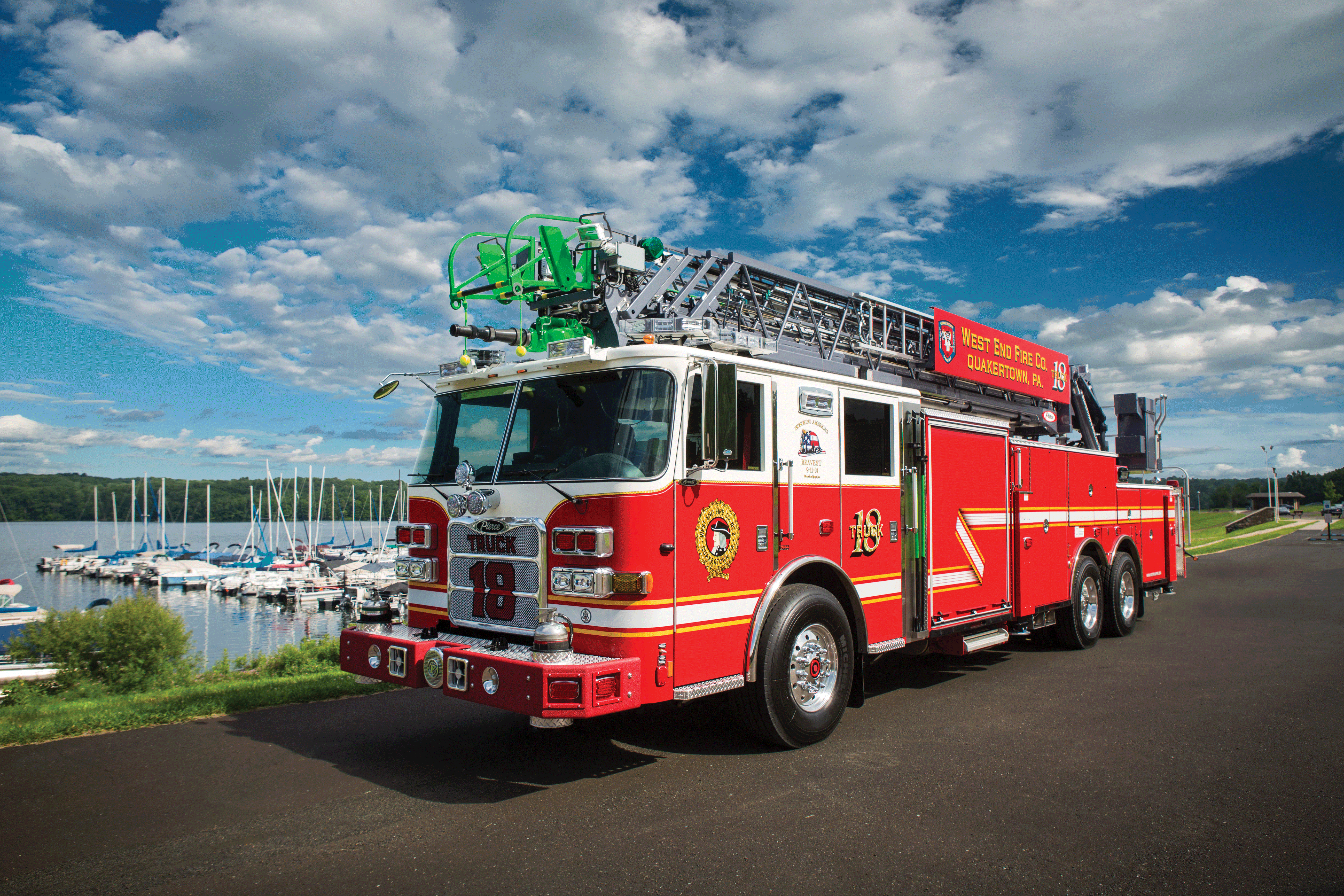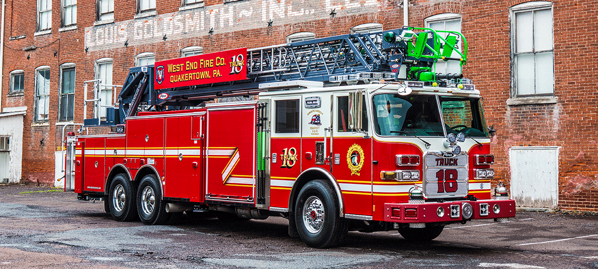 “Accessibility is always an obstacle with Quakertown’s tight streets and rural roadways. Our new apparatus maxes maneuverability and reach while easing setup with its 105-foot heavy-duty aerial, 12-foot jack span and 500 lb tip load. Top it off with outstanding service and support, and you’ve got one happy customer.”