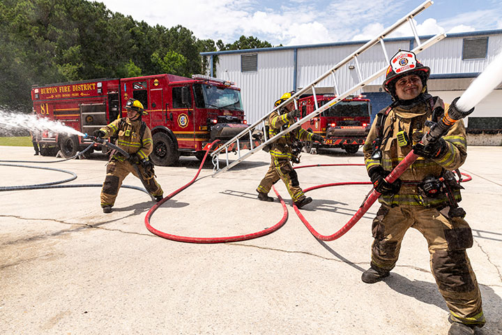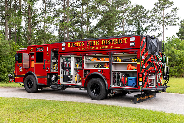 Burton Fire District is surrounded by water and marsh, requiring each pumper to respond with a suite of water borne emergency tools.